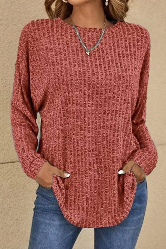 Casual Ribbed Long-Sleeve Sweater with a Relaxed Silhouette