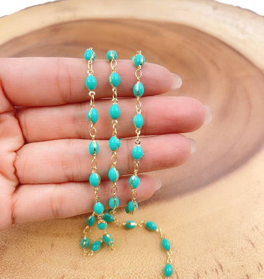 Green Turquoise Beaded Chain by Foot, Gemstone Chain CH313