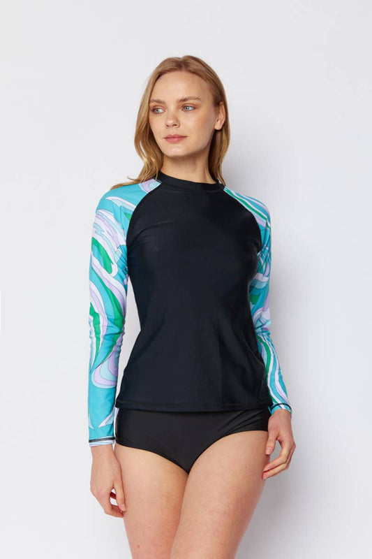 Long Sleeve Rashguard, Highwaisted bottom 2 Pcs