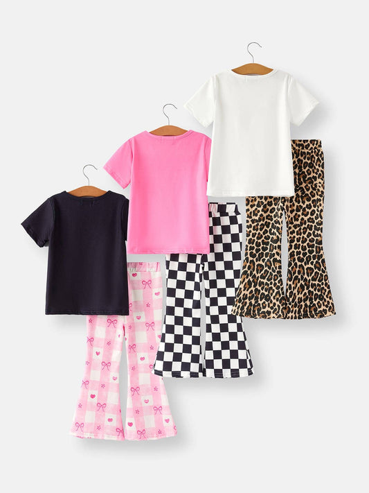 Letter Leopard Check Bow Floral Print Girls Set 6-Piece Set