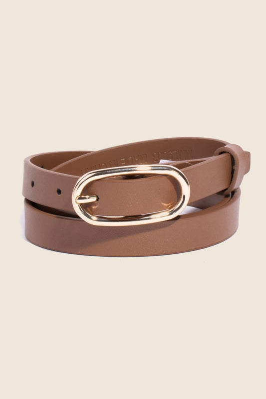 Long Oval Buckle Leather Belt
