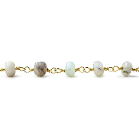 5.5mm Blue Peruvian Opal Plain Rondelle Gold plated Chain by the foot