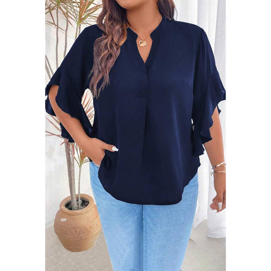 Plus V-Neck Ruffle Half Sleeves Loose Blouse