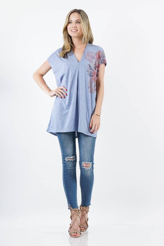 Sublimation v neck loose fit tunic