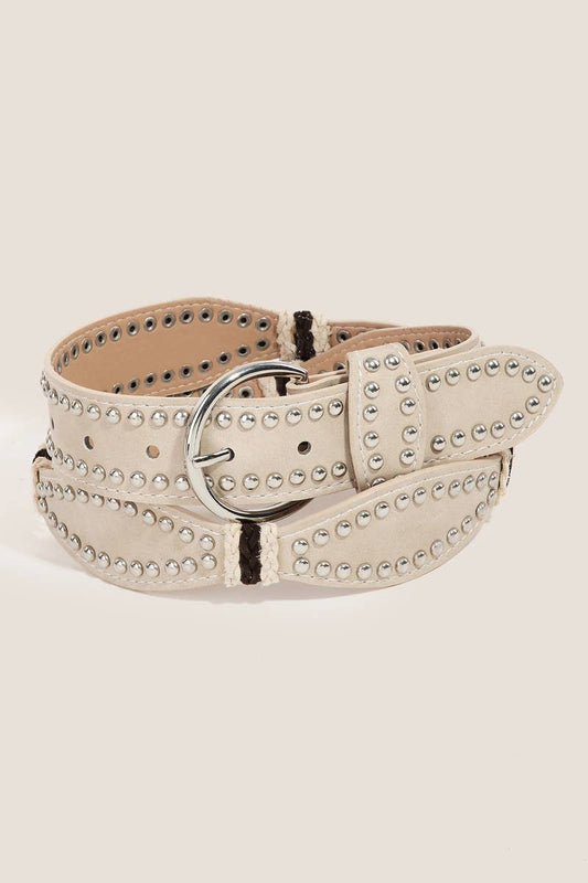 Studded Western Trim Faux Leather Wavy Belt