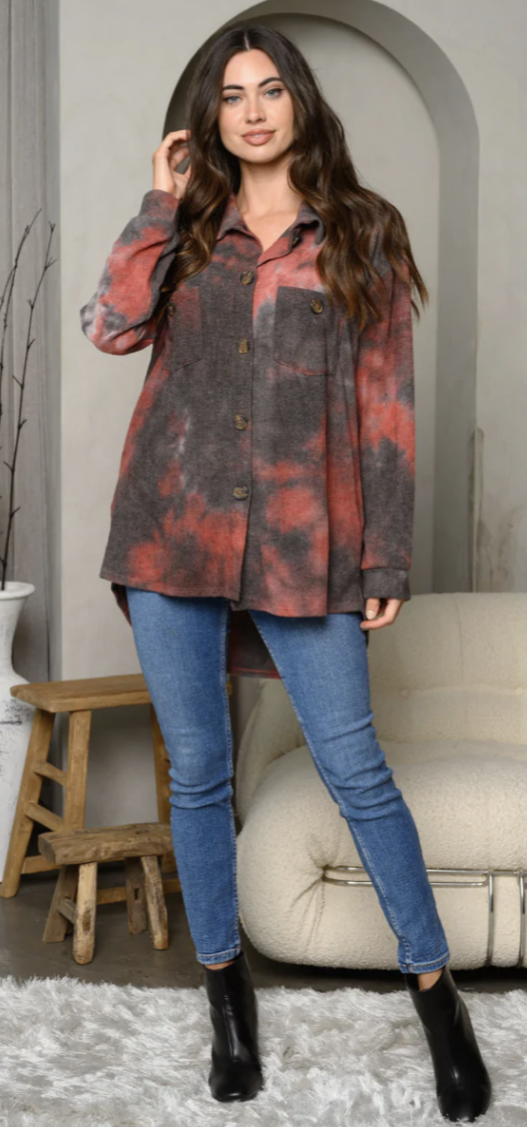Sold outWomens Long Sleeve Button Up Tie Dye
