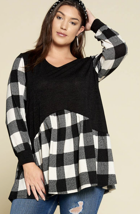 Plus Size Rainbow Balloon Sleeve Tunic Top