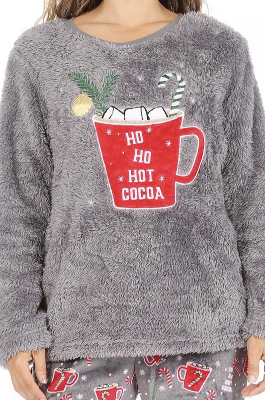 Cocoa Christmas Fuzzy long sleeve top with loose fit pants