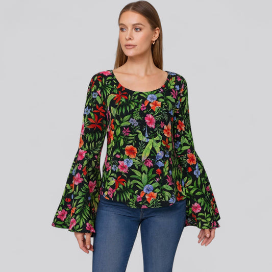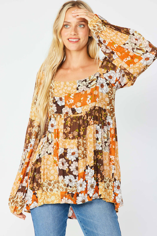Vintage Floral Print Long Sleeve Top w/Elastic