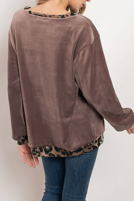Lantern Sleeve Beaded Split V Neck Velvet Top