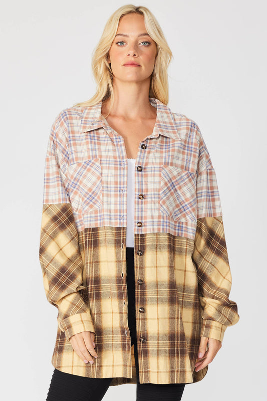 MIXED PLAID BUTTON DOWN OVERSIZED SHIRT