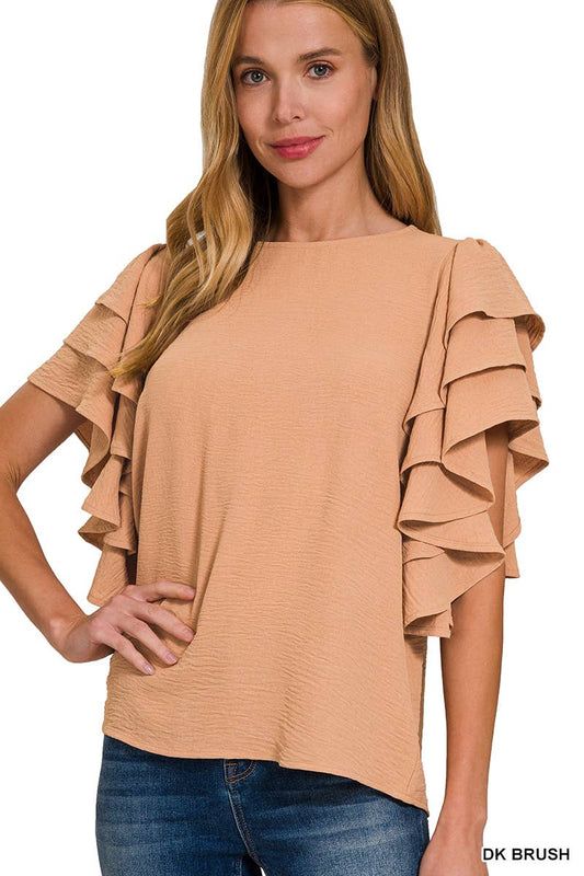 Woven Airflow Multi-tiered Ruffle Sleeve Top
