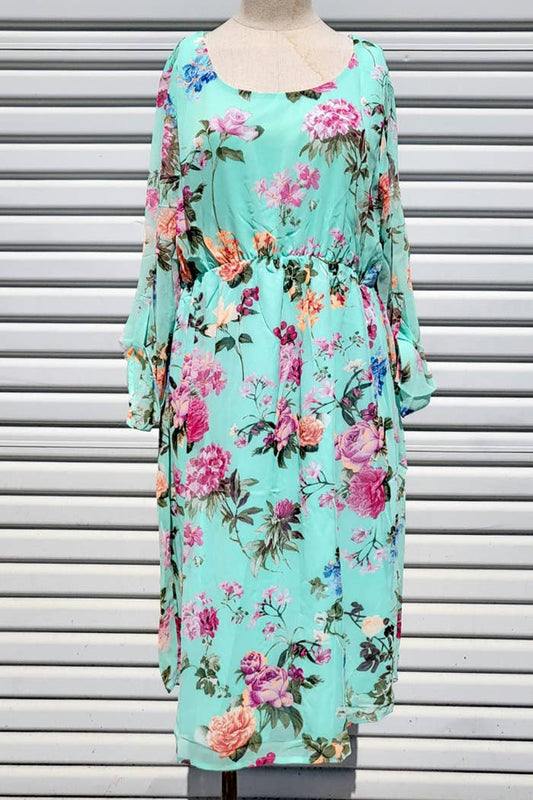 VD5937K - WOMEN FLORAL PRINT ELASTIC WAIST MIDI DRESS