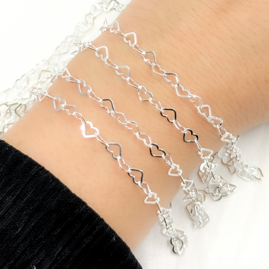 925 Sterling Silver Flat Heart Link. Link Size: 6x4mm.