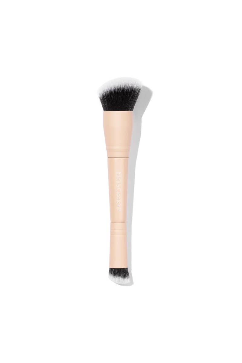 Beauty Creations SCCB Snatch and Sculpt Brush. A dual ended multi-use brush with synthetic fibers. Designed for a precise contour application and an effortless blend. Can be used with powder, cream, or liquid formula. Use the small end for precision application and the large end for bluffing and blending.