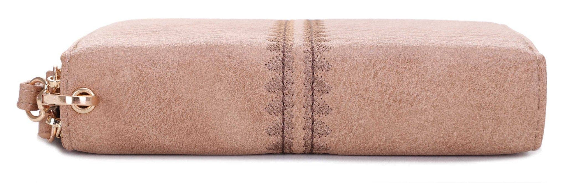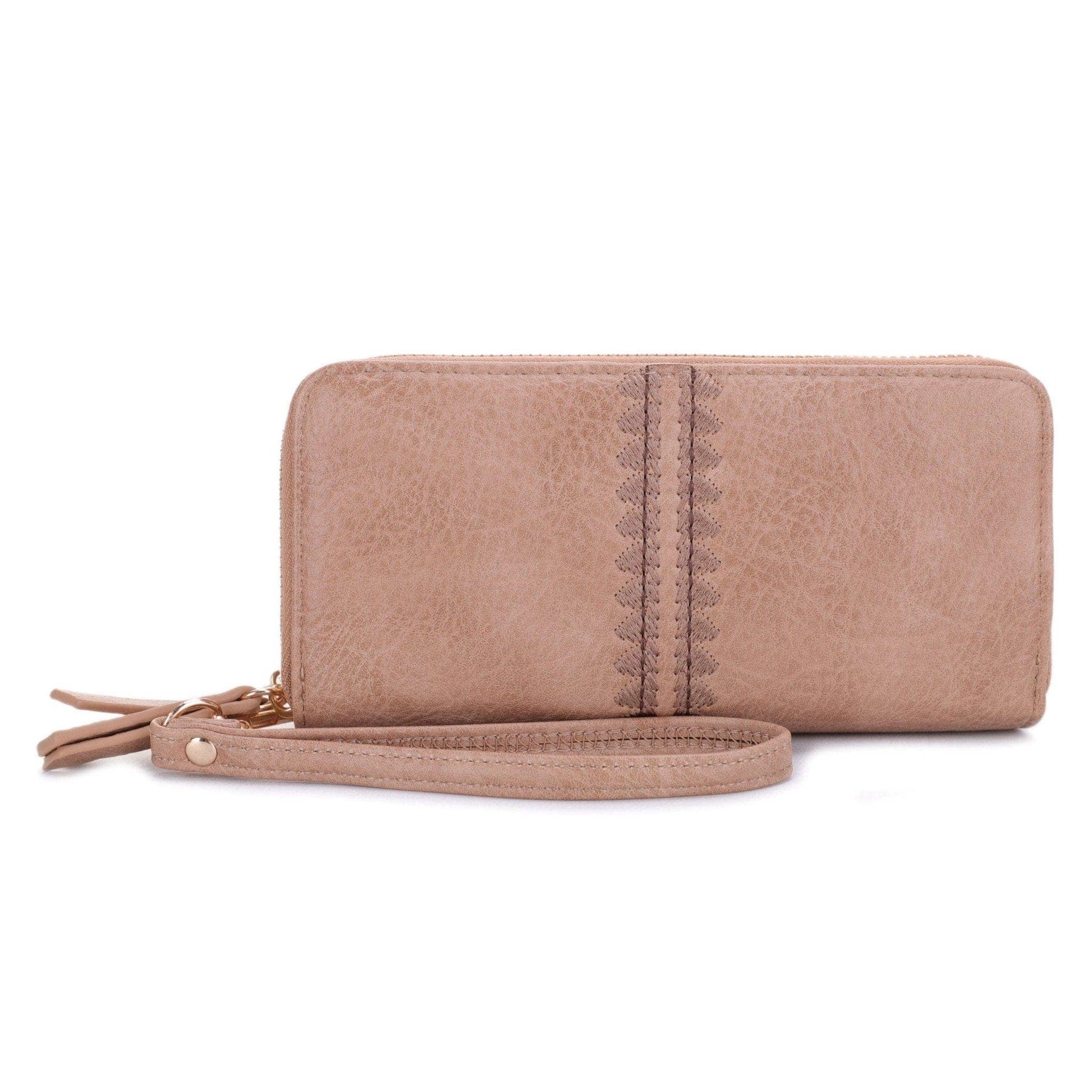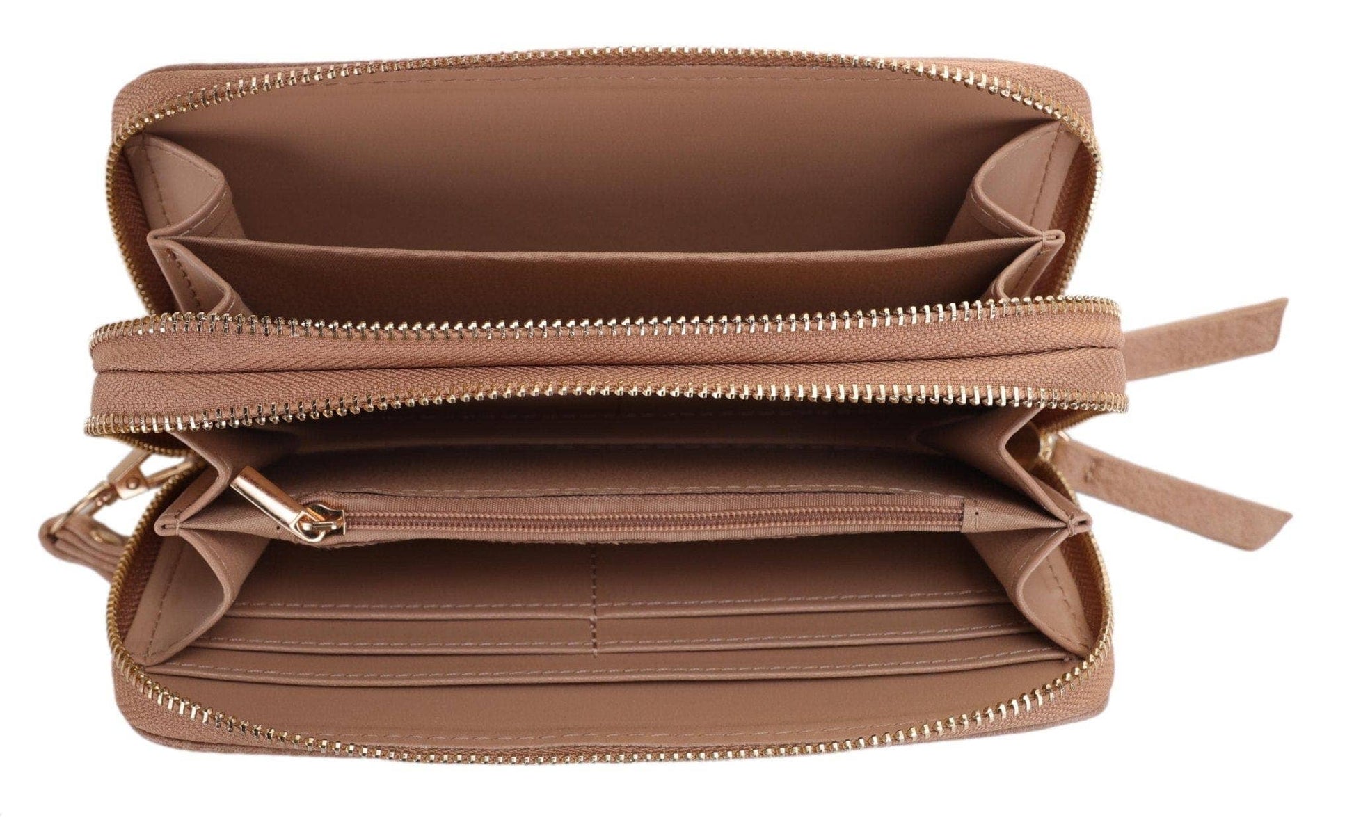 Introducing the Sherrie Double Zipper Wallet - your new go-to accessory for staying organized and on trend! With its double zipper design, this wallet has plenty of room for all your cards, cash, and more. Say goodbye to clutter and hello to convenience! * Double zipper compartments * One side has slot with divider * One side has card and bill slots * Middle zipper pouch * Comes with wristlet * Gold hardware * 7.5" x 1.75" x 3.75"