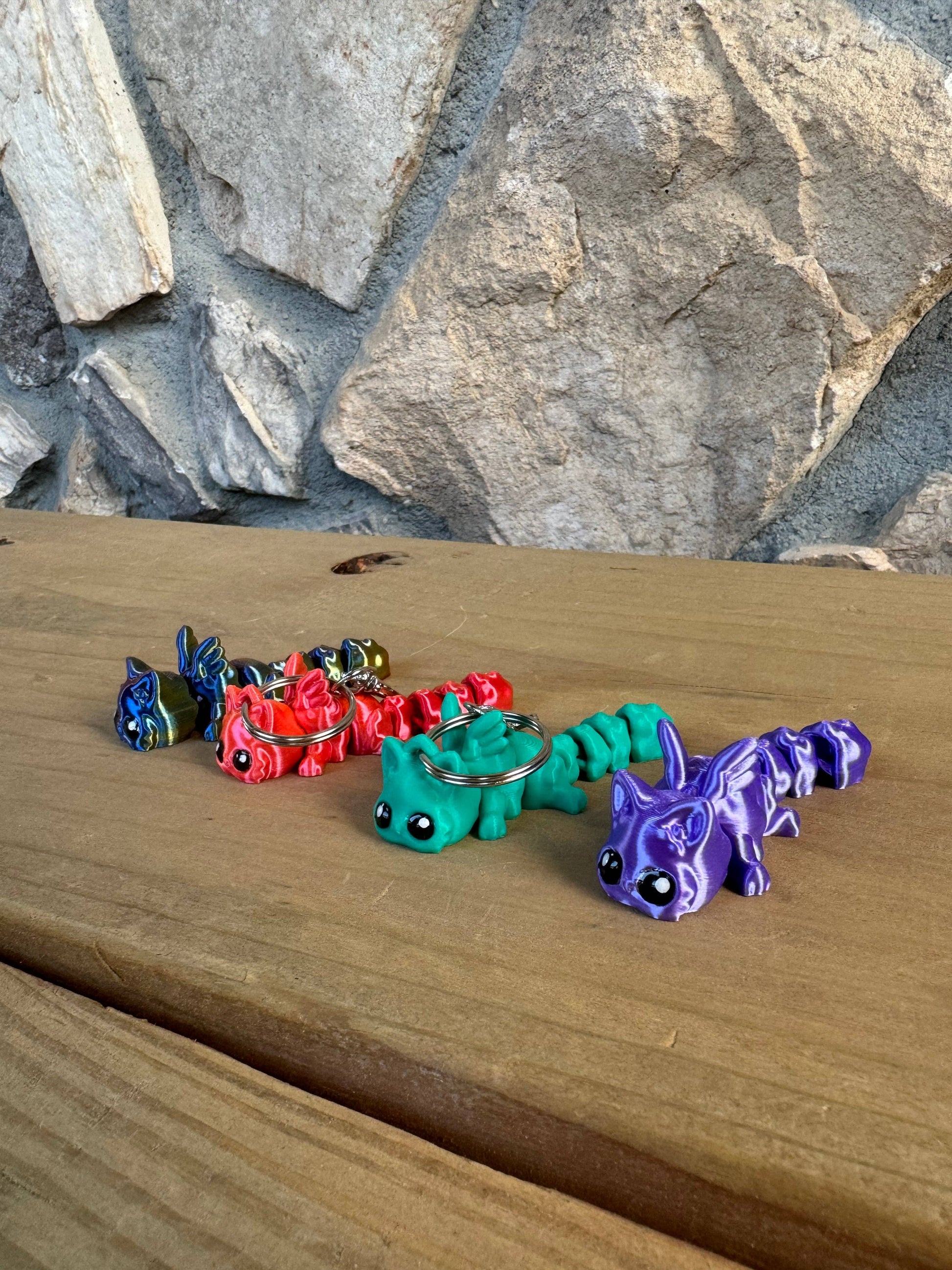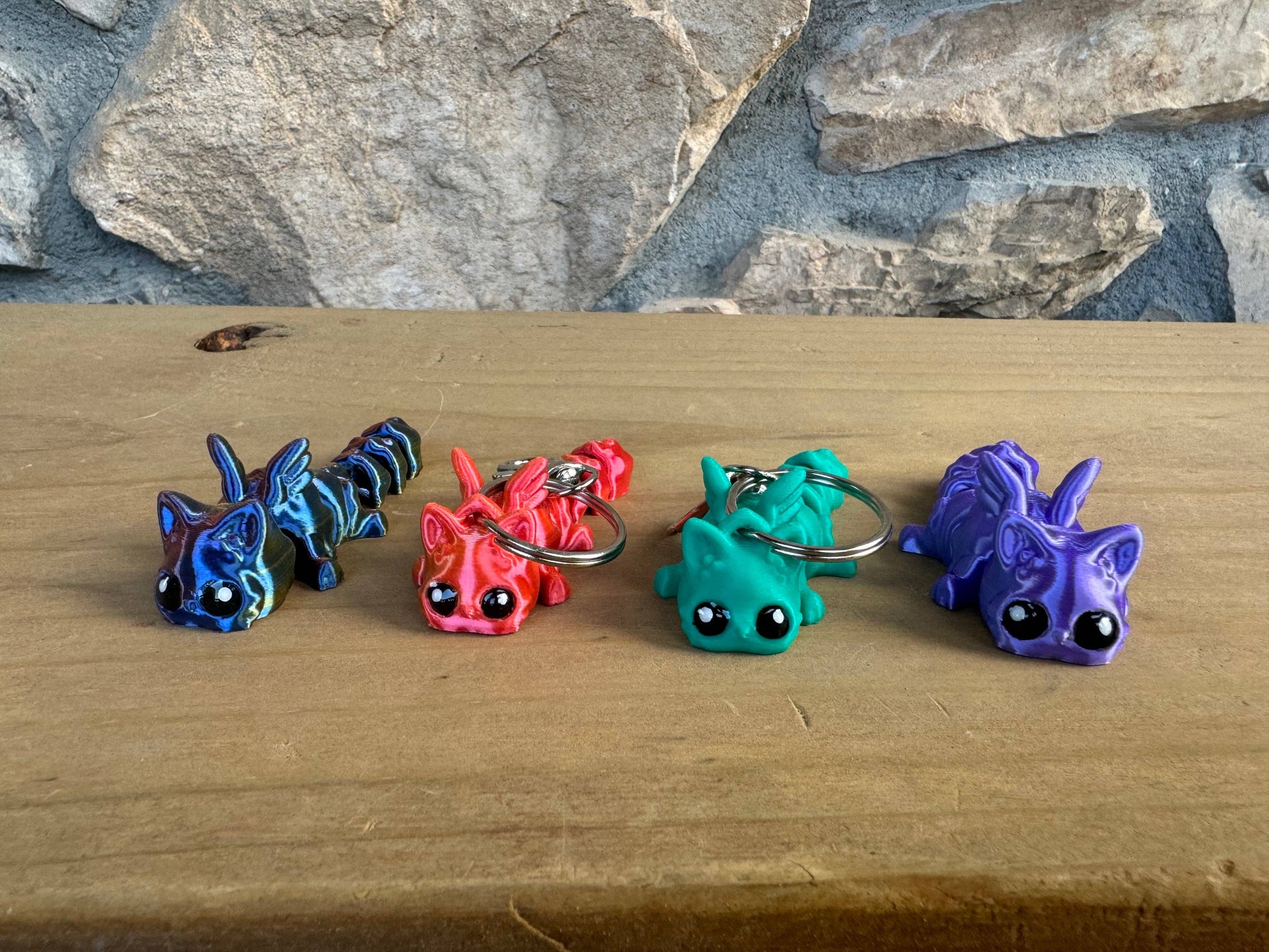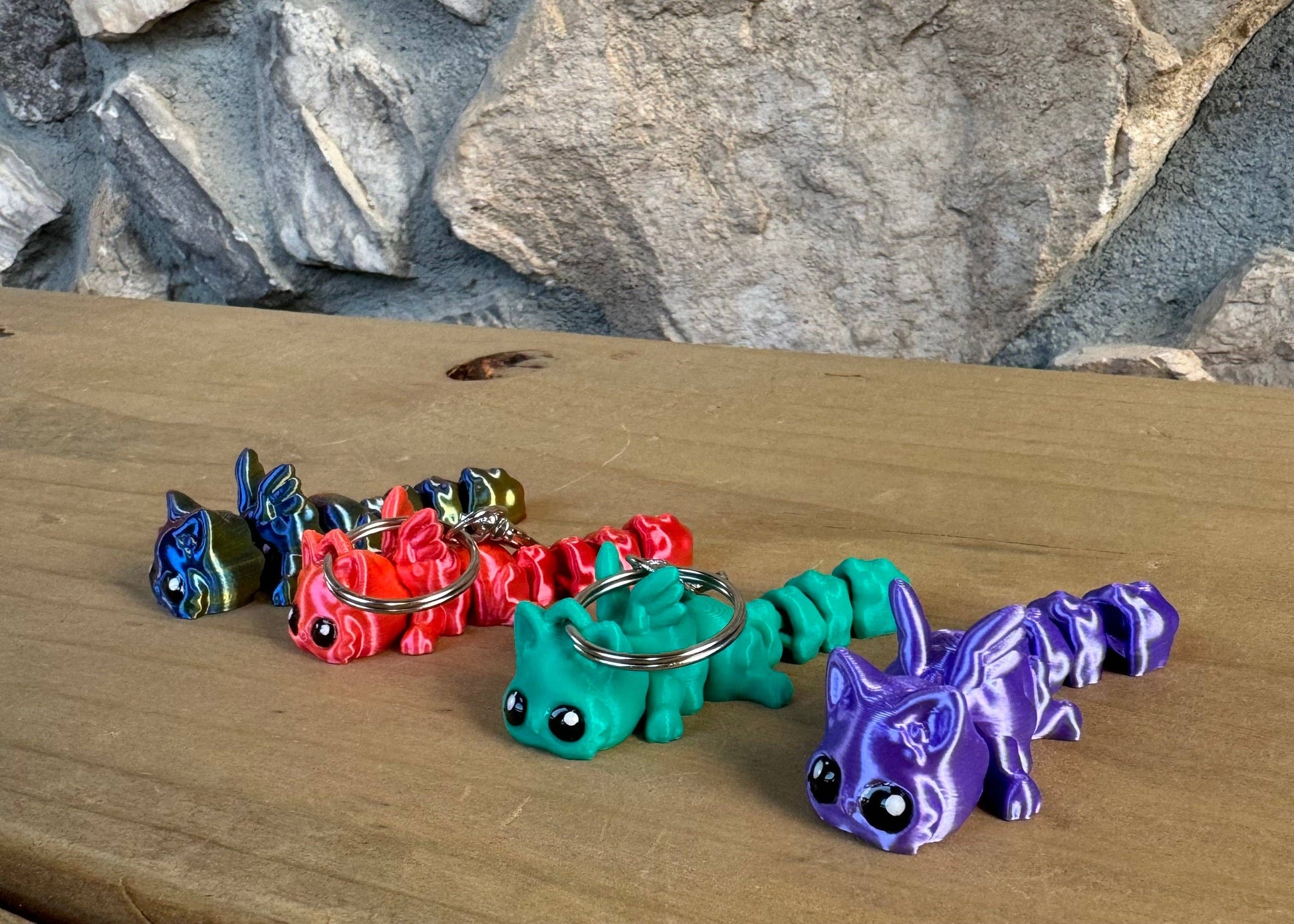 3D printed fairy cat is available with and without keychain. Each baby has hand painted eyes and measures about 3" in length.