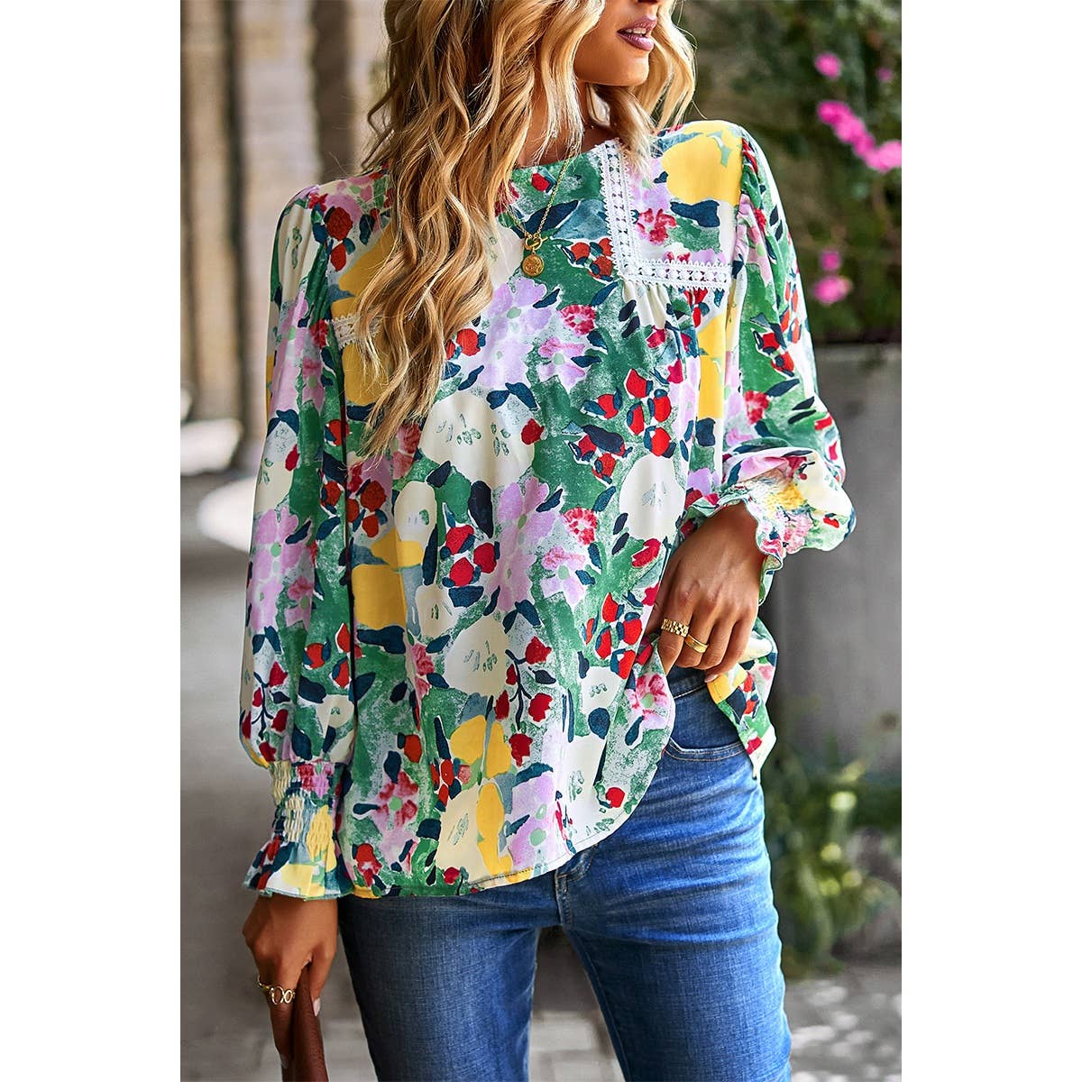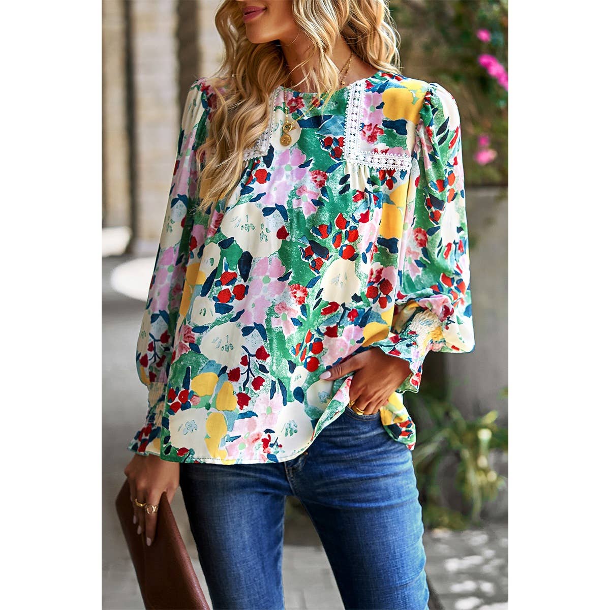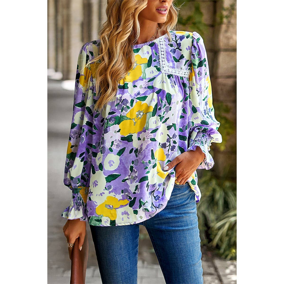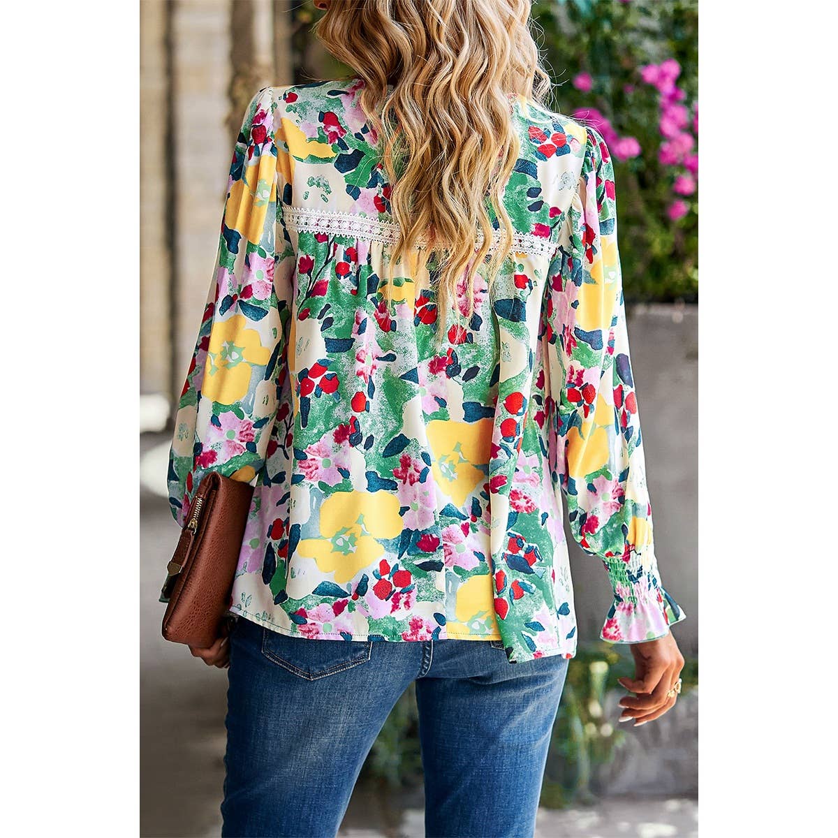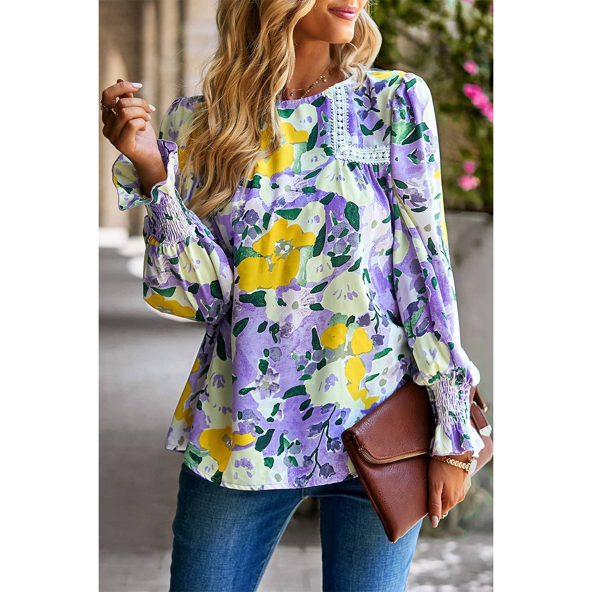 Brighten up your wardrobe with this stunning floral top featuring a playful mix of vibrant yellow, periwinkle, and soft lavender hues. The lightweight fabric flows effortlessly while the contrast lace trim adds just the right touch of charm. With a flattering relaxed fit, gathered cuffs, and a split hem detail, it’s a versatile piece perfect for dressing up or keeping casual. Pair it with denim or dress pants for an easy-breezy look that feels as good as it looks!
