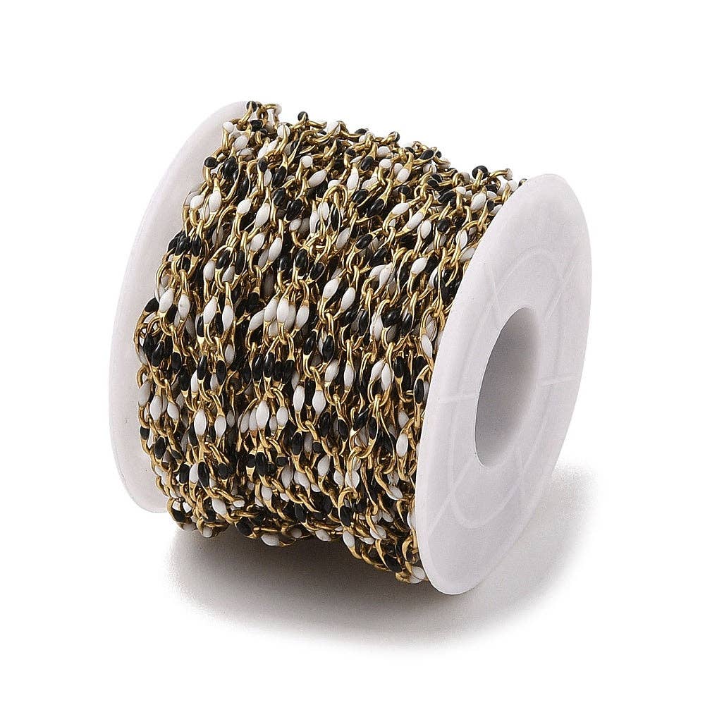 Oreo Enamel Link Chain By the Foot - Ion Plated Stainless Steel