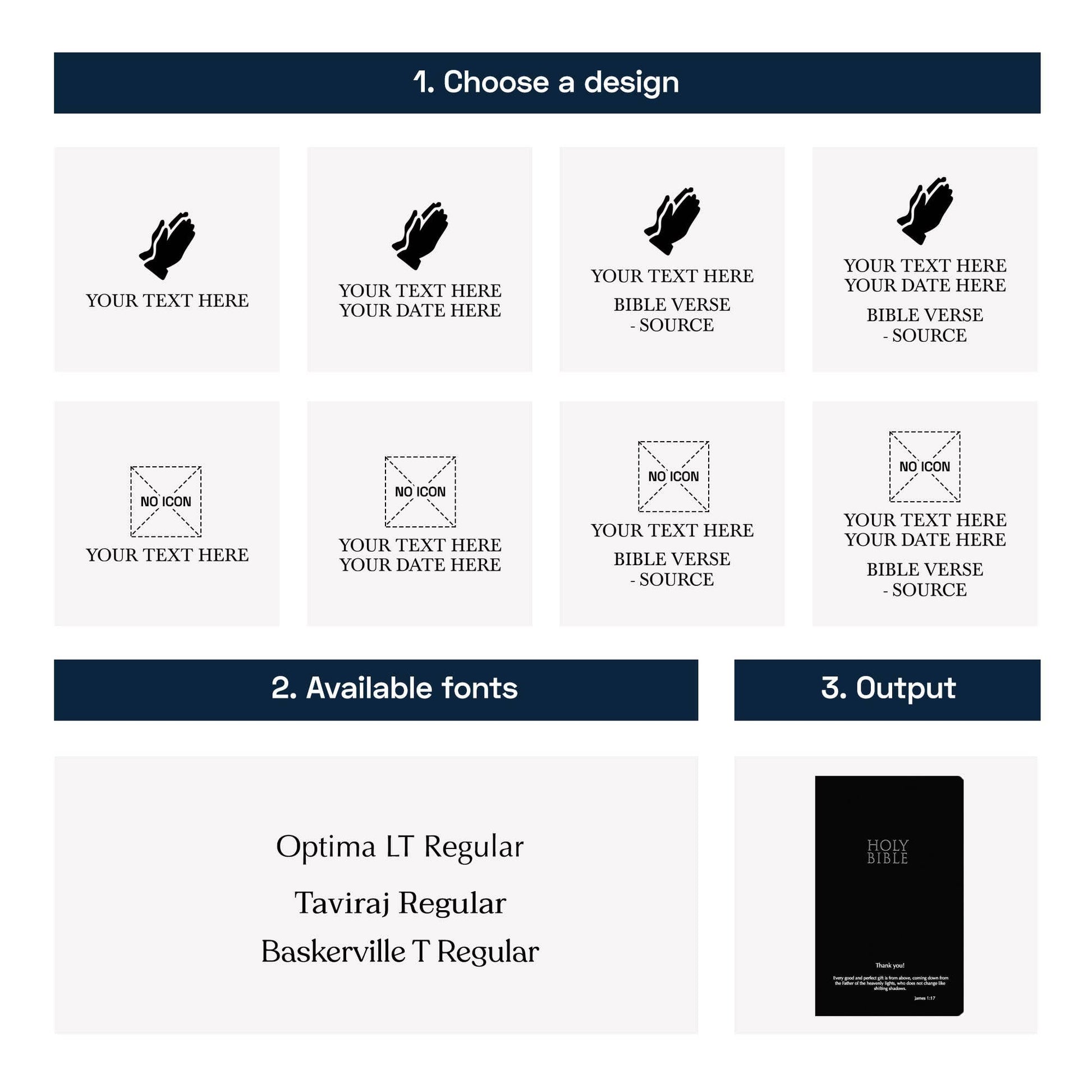 PERSONALIZED FOR YOU: Personalize your NIV Bible with a special memory or note, and choose from our pre-made Icons or add a Name and Date, all beautifully imprinted on the black cover.