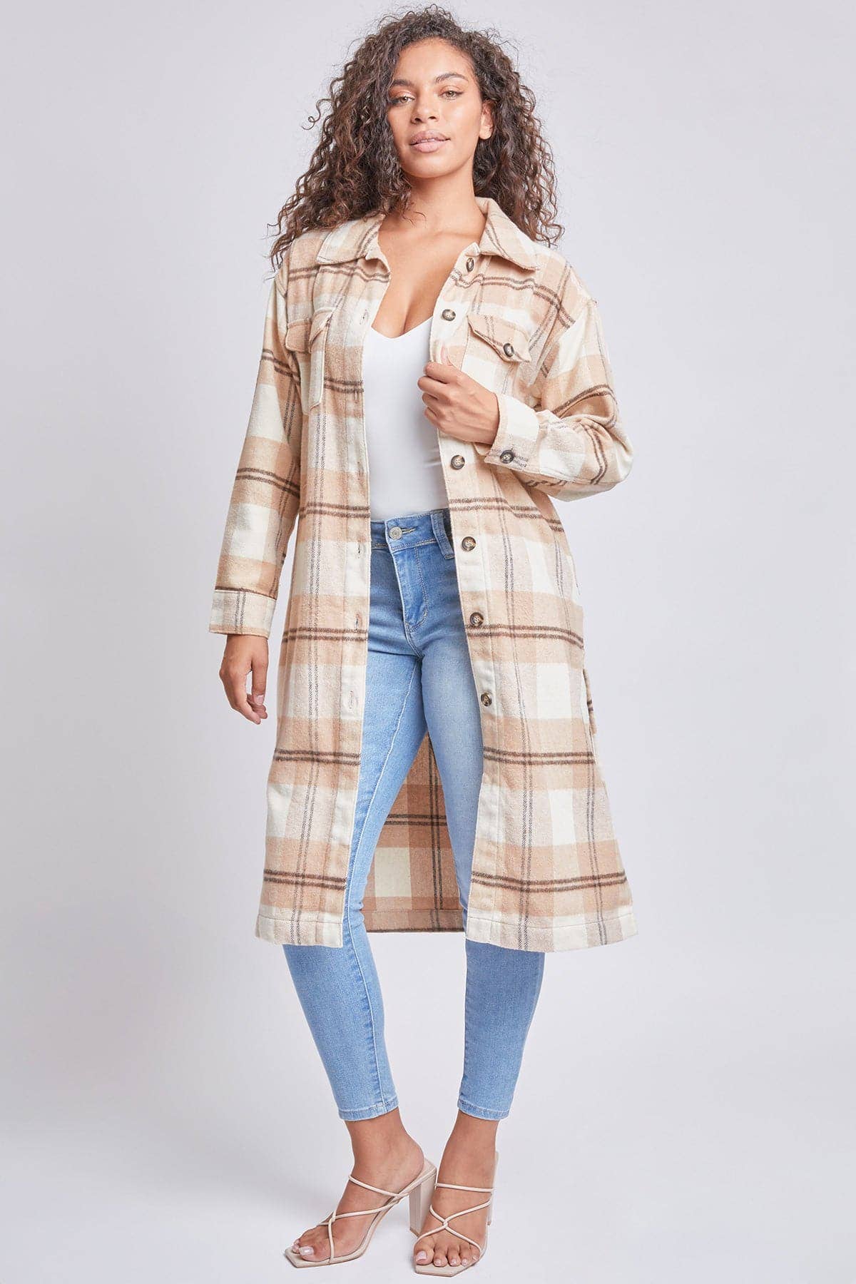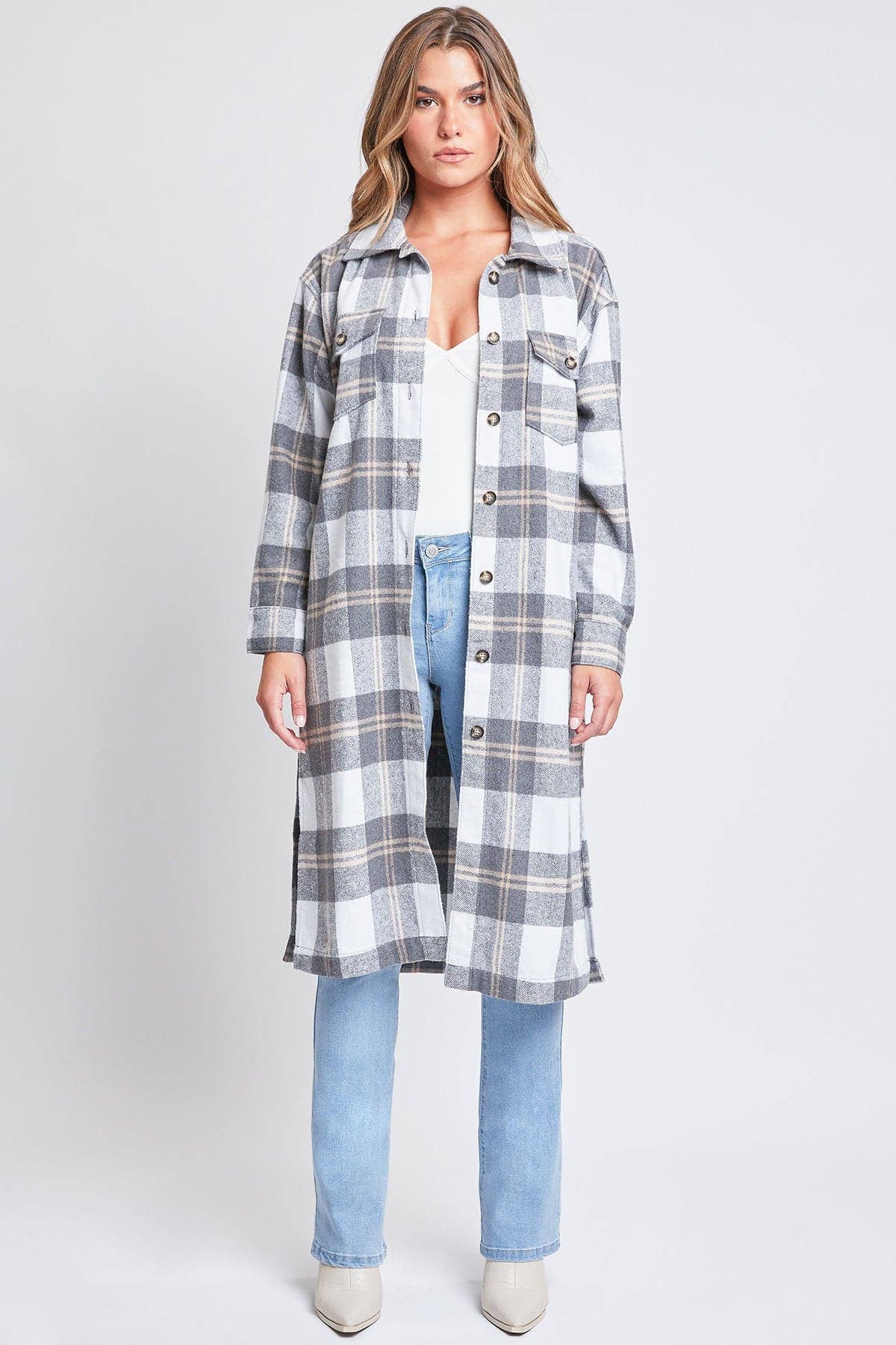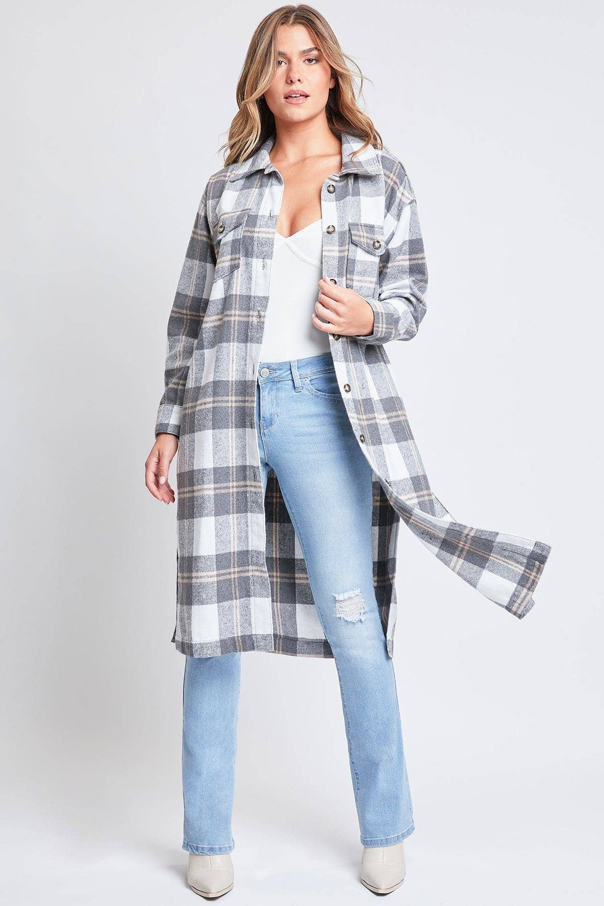 Looking for the perfect shacket this Fall and Winter Season? Well, you’re in luck. Our Plaid Shacket Duster is the layering piece you’ve been looking for! It has the look of a stylish coat, but is super lightweight and cozy- making it the perfect hybrid. You’ll love the versatility of it: add this shacket as an extra layer this Winter, or wear it simple in the Fall. For a chic look, pair this jacket with jeans, boots, and a hat or beanie. For an off-duty look, pair this shacket with sweatpants, a crop top, and sneakers.