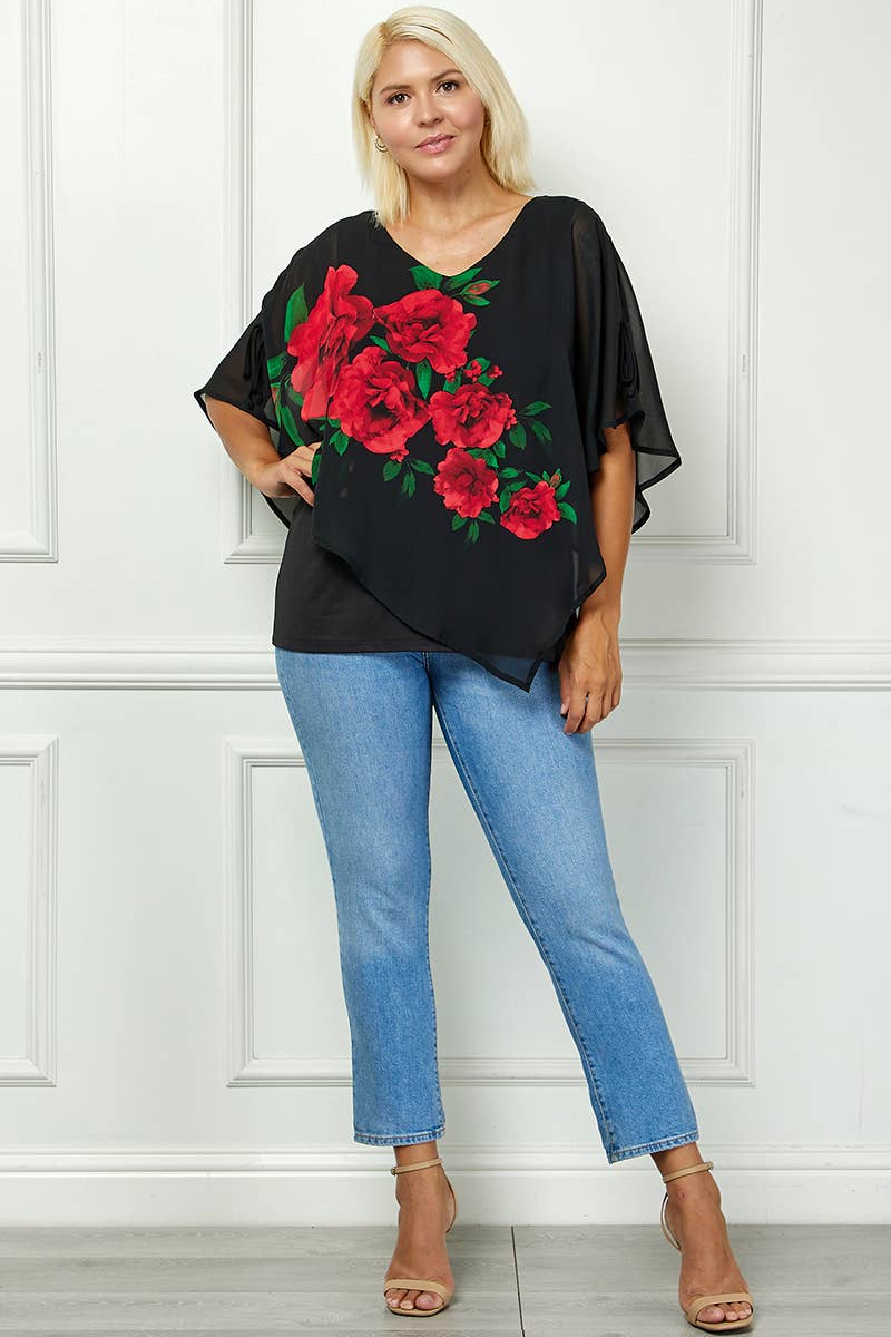 PLUS SIZE BLOOMING ELEGANCE PONCHO BLOUSE