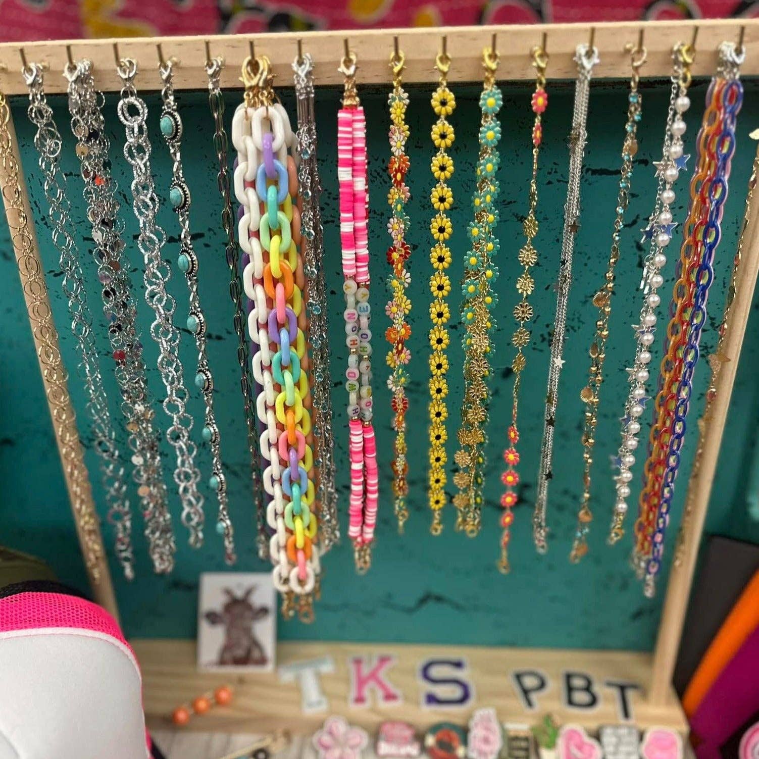 Each one is hand-selected for its unique style—think chunky links, sleek metallics, western flair, or a hint of sparkle. Easily attach to any trucker or baseball hat with secure clips—no tools, no drama.