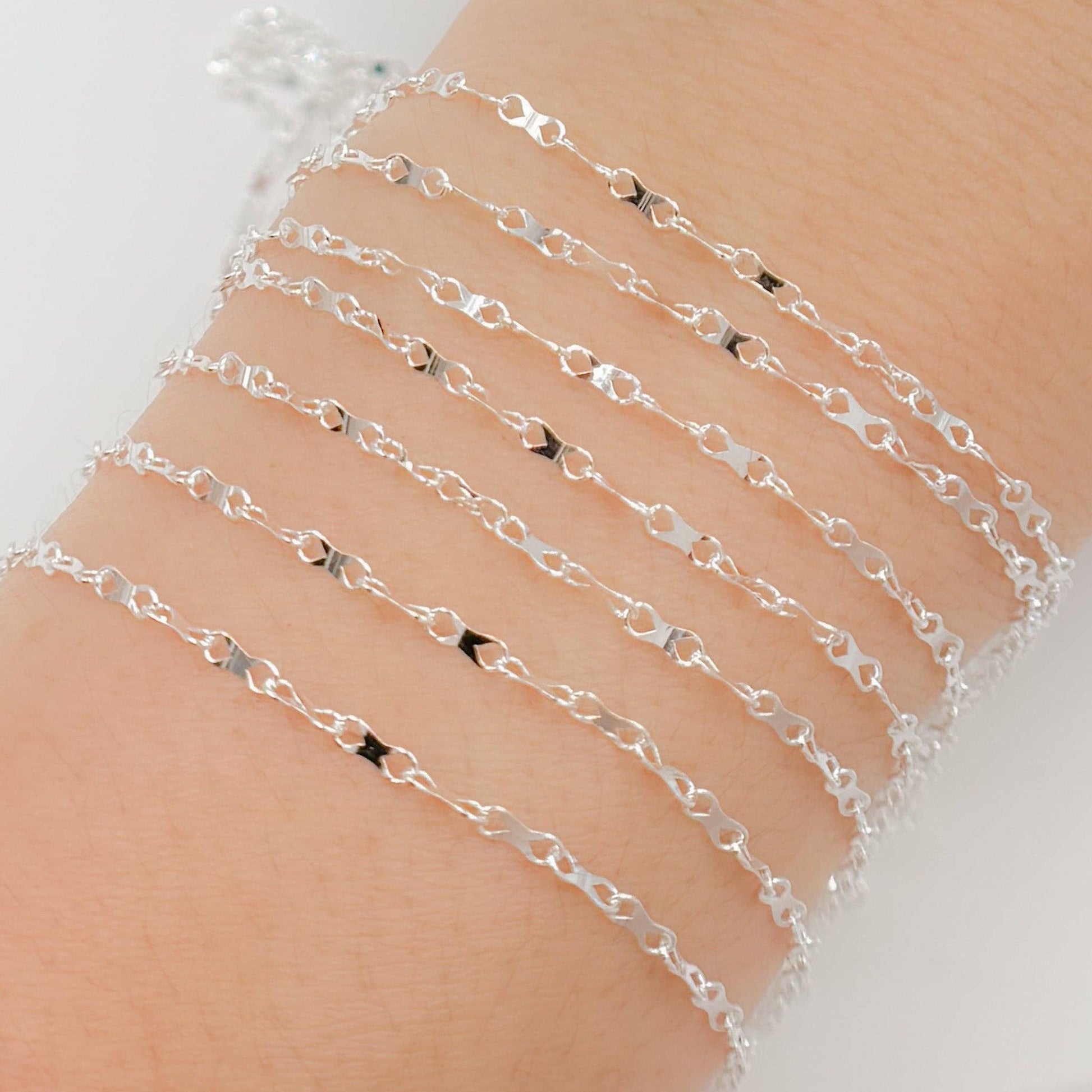 925 Sterling Silver Bold Infinity Link Chain. Link Size: 2x5mm. Sold by Foot. Measurements are taken from the outer edge of the link.