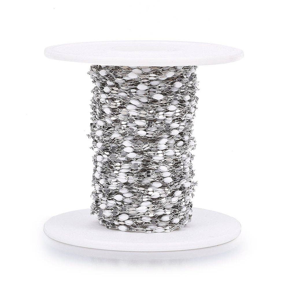 White Enamel Dapped Silver Chain By the Foot - Stainless Steel