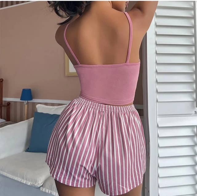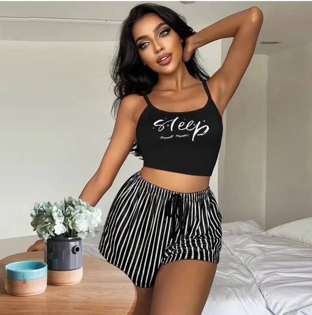 Relax in style with this cute comfy women's sleepwear set. Super soft stretchy material that fits every body size perfectly. Tank Top & Shorts pajama set. Sexy Pajamas. Stripped shorts