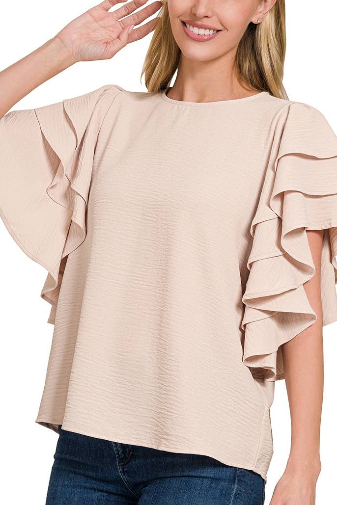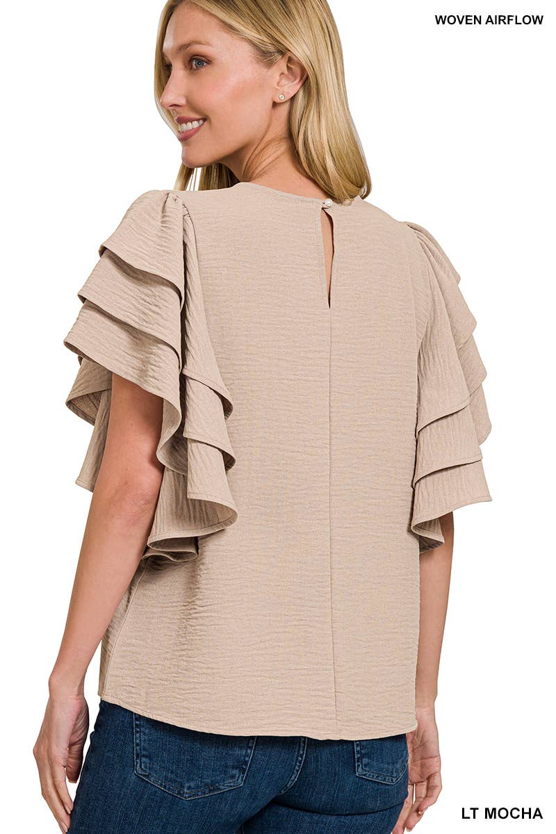 Woven Airflow Multi-tiered Ruffle Sleeve Top